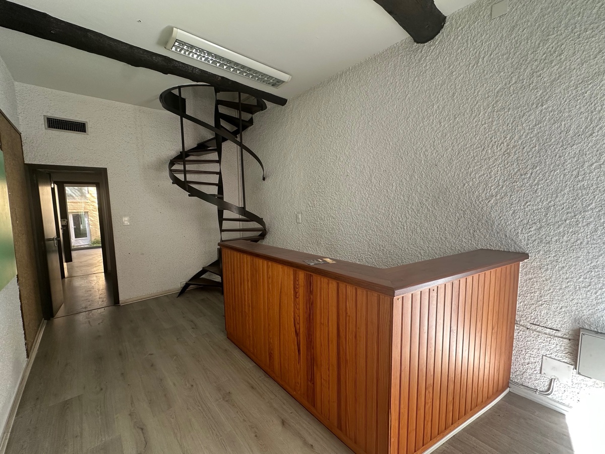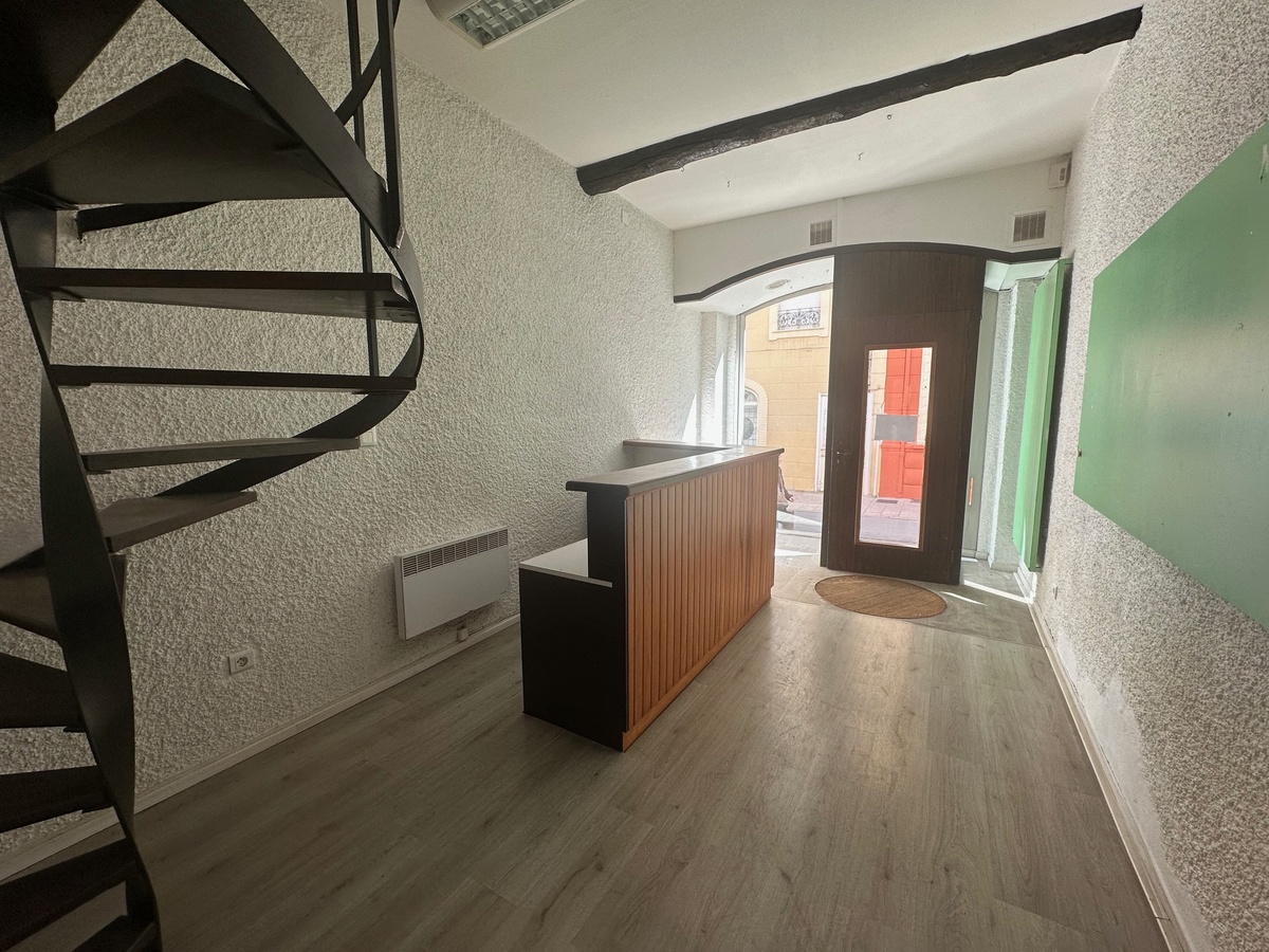 Idéalement situé en plein centre-ville de Prades, ce local commercial de 101 m² offre une configuration fonctionnelle sur deux niveaux, parfaitement adaptée à une activité de bureau, profession libérale ou siège administratif.