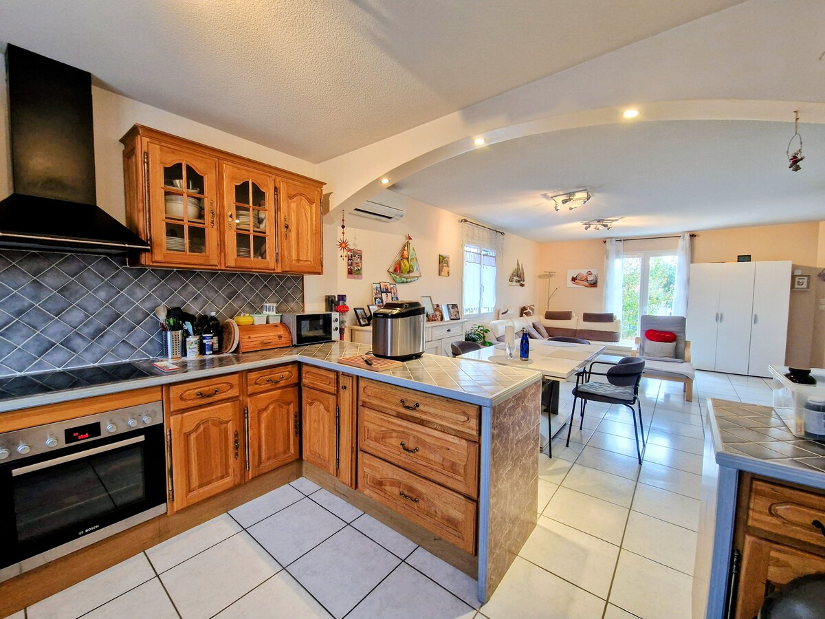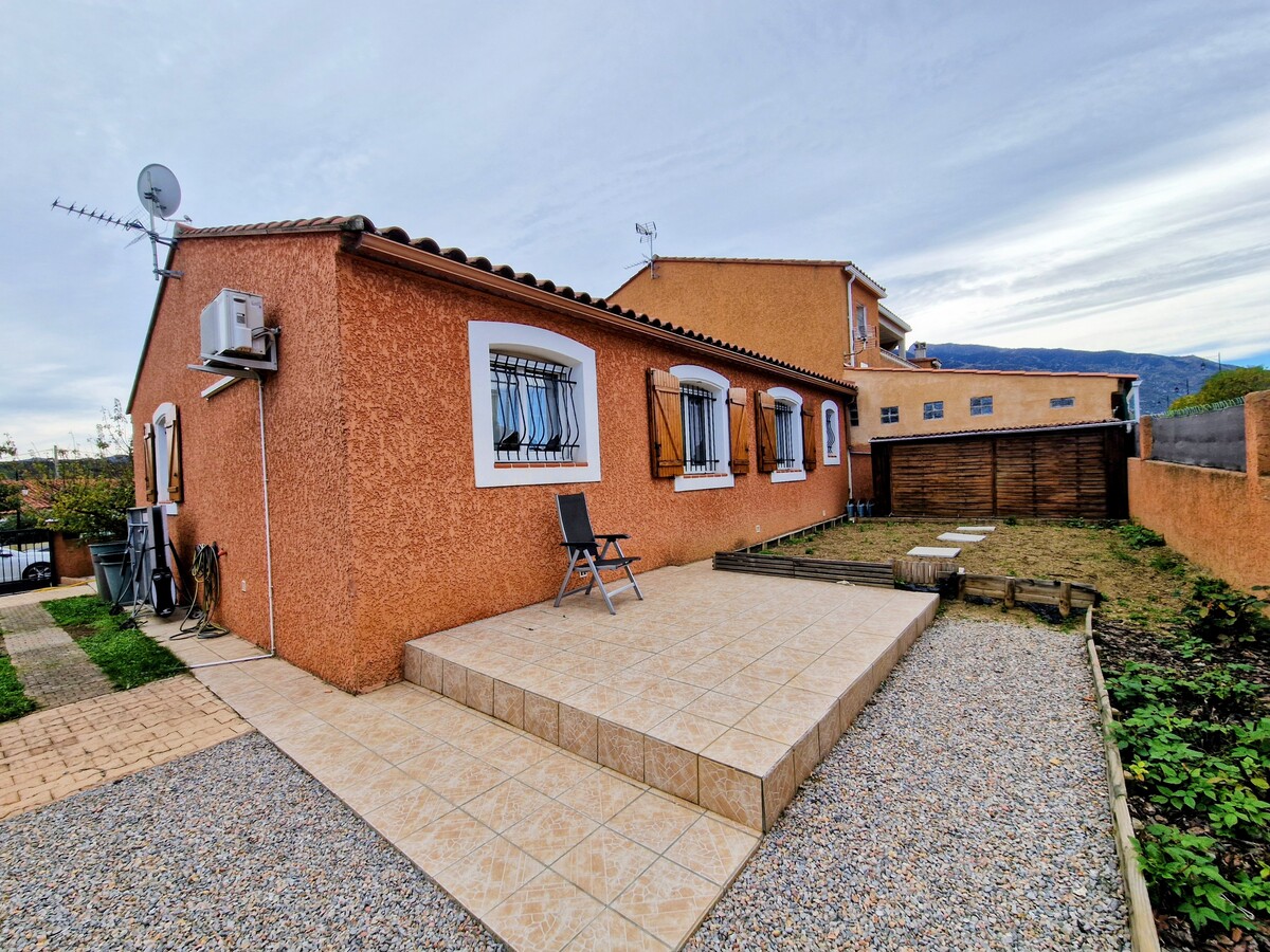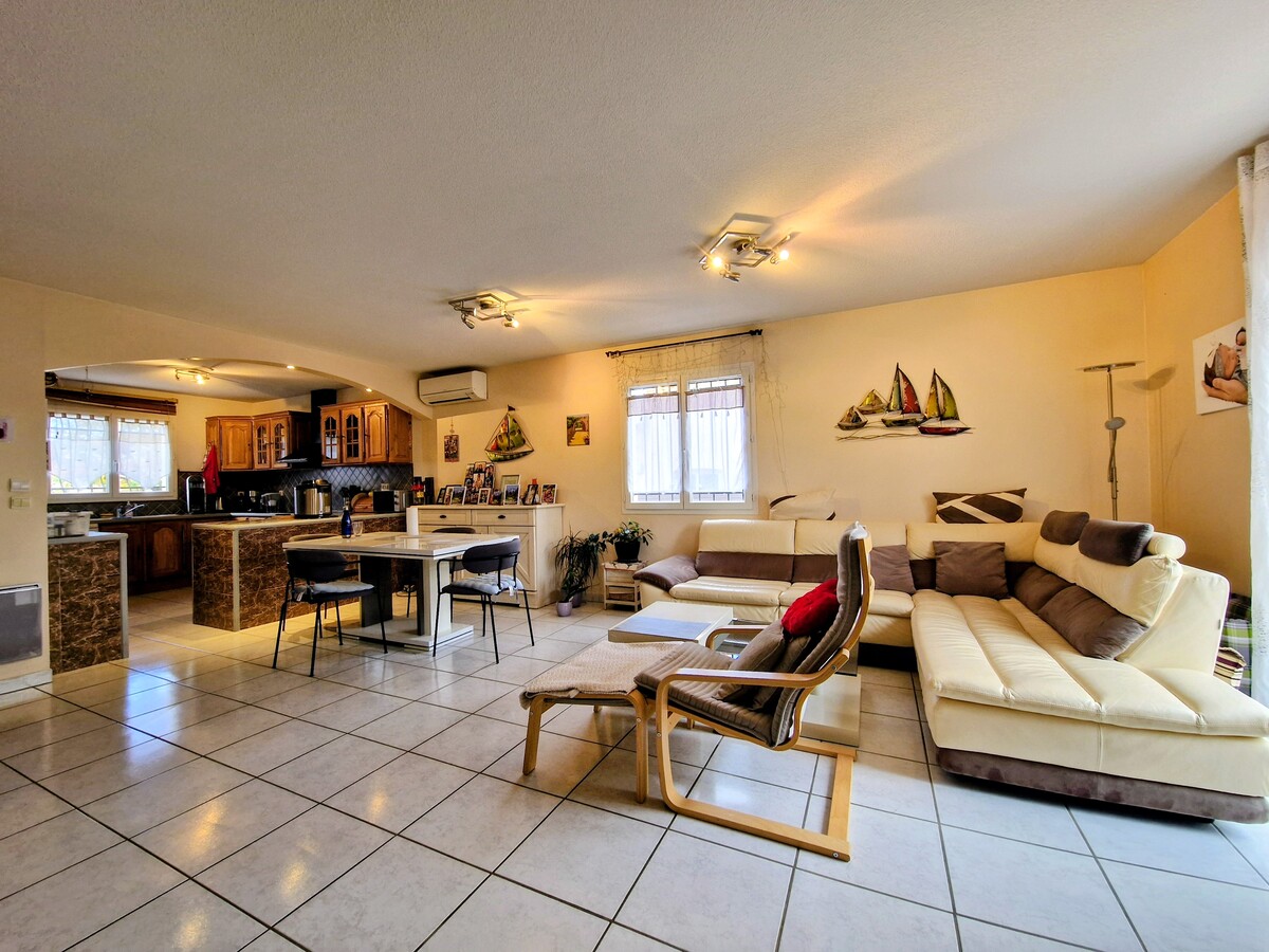 Dans un lotissement, une villa 3 faces lumineuse de plain pied (année 2008) de type F4 (3 chambres) avec garage et terrasse sur jardin clos et arboré. La maison est isolée et bénéficie de la clim réversible. L'atout également de cette maison est de pouvoir garer un camping car sur la propriété.