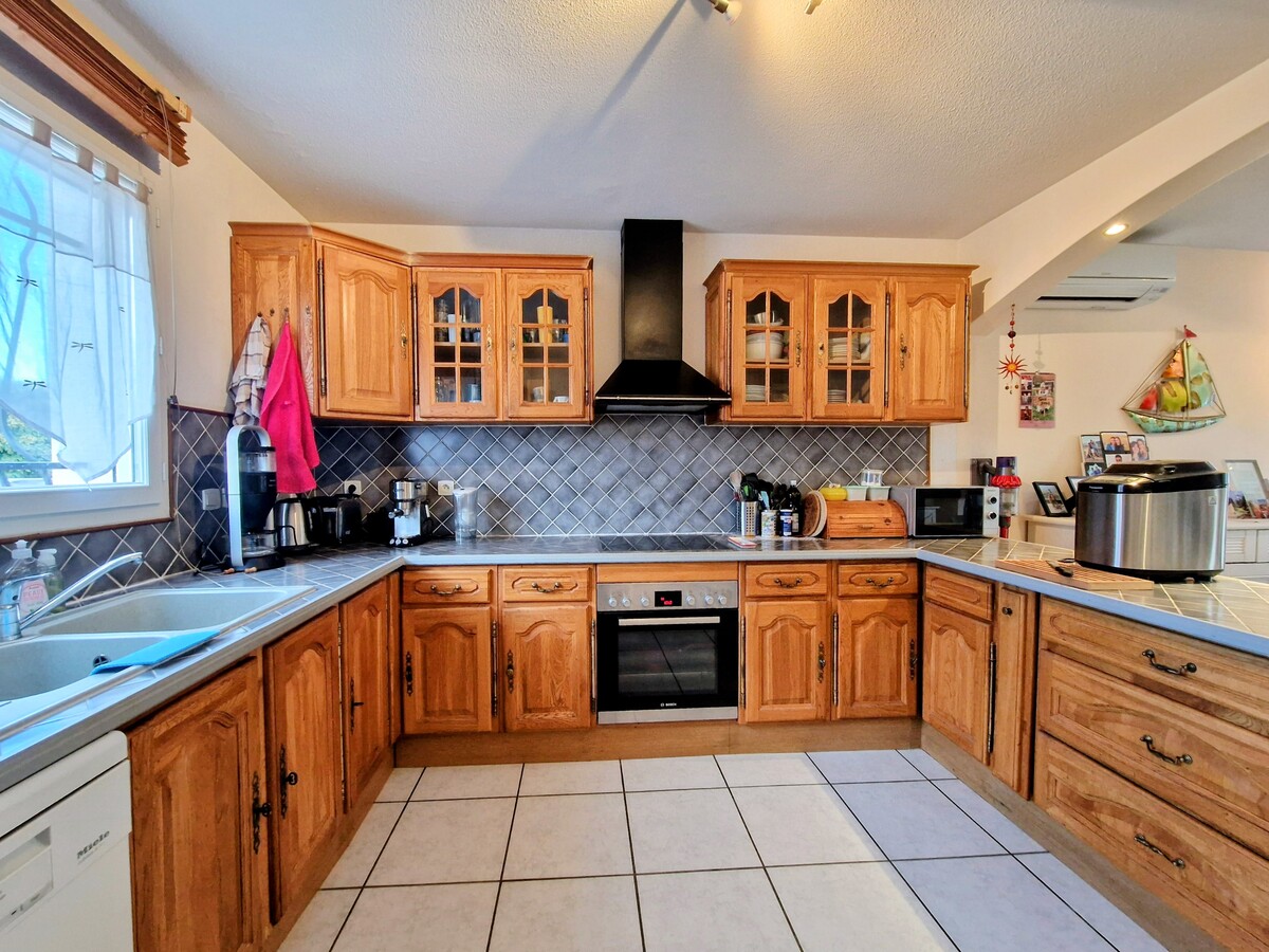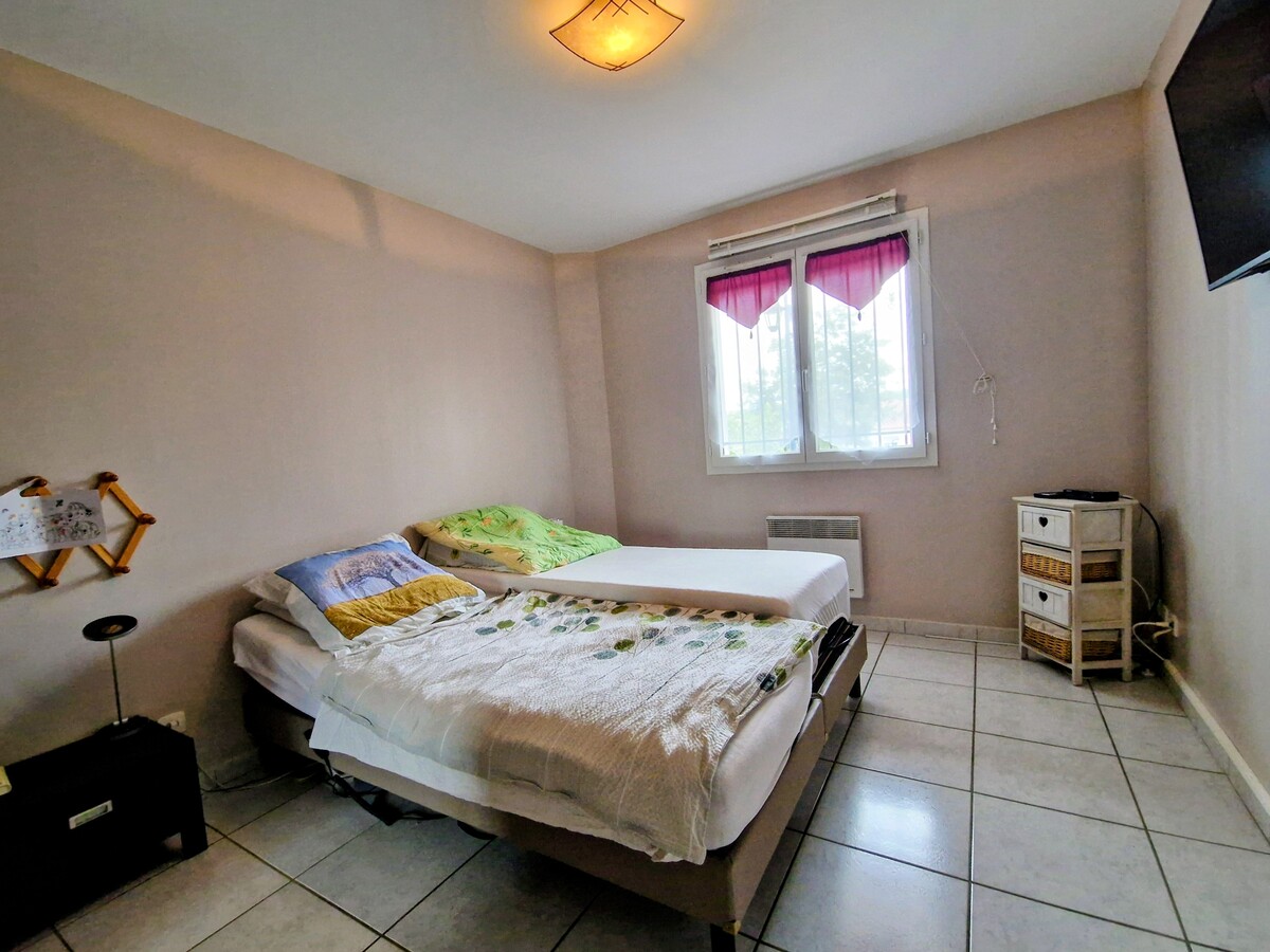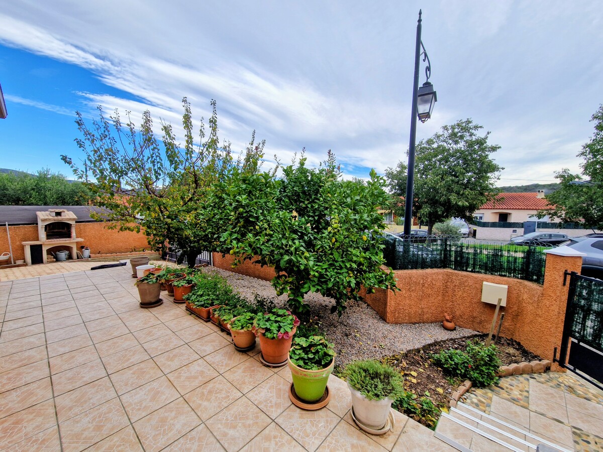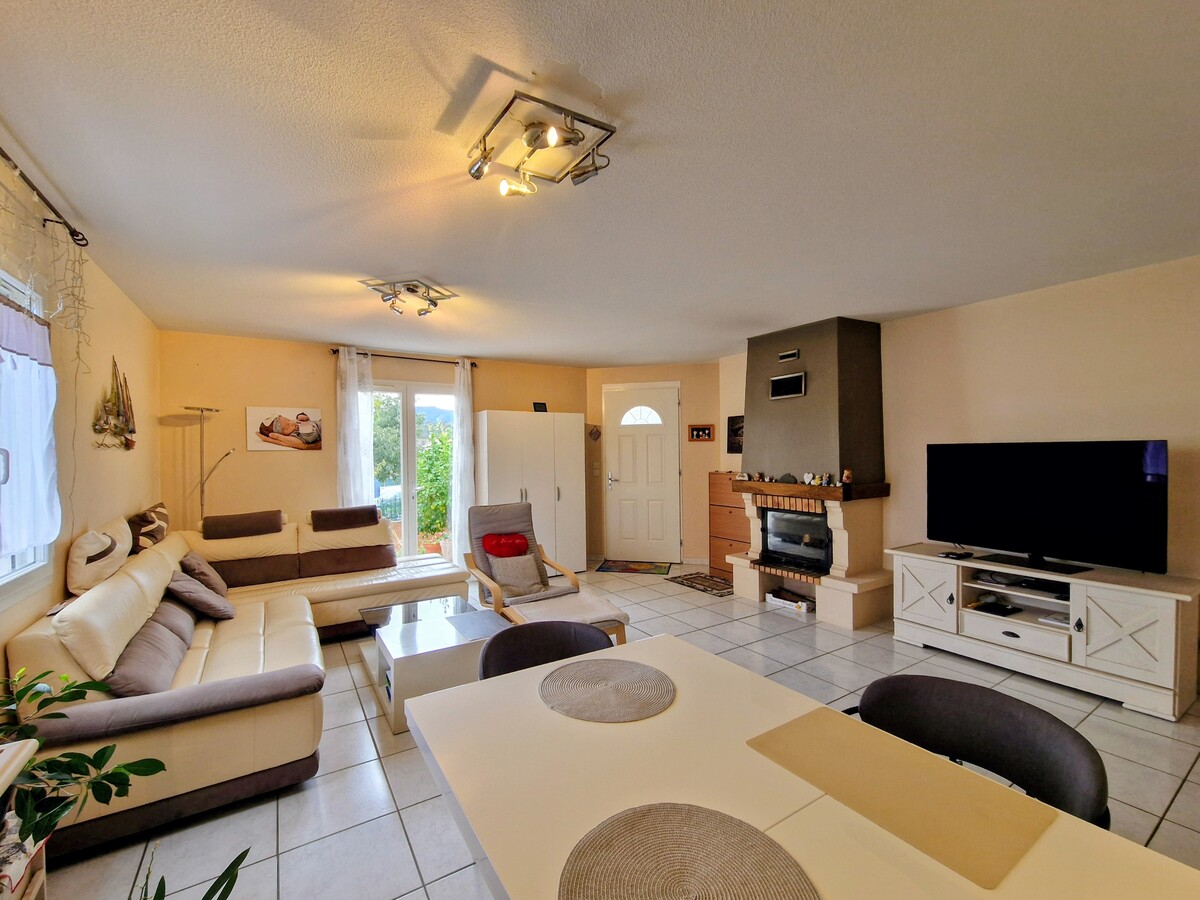 Dans un lotissement, une villa 3 faces lumineuse de plain pied (année 2008) de type F4 (3 chambres) avec garage et terrasse sur jardin clos et arboré. La maison est isolée et bénéficie de la clim réversible. L'atout également de cette maison est de pouvoir garer un camping car sur la propriété.