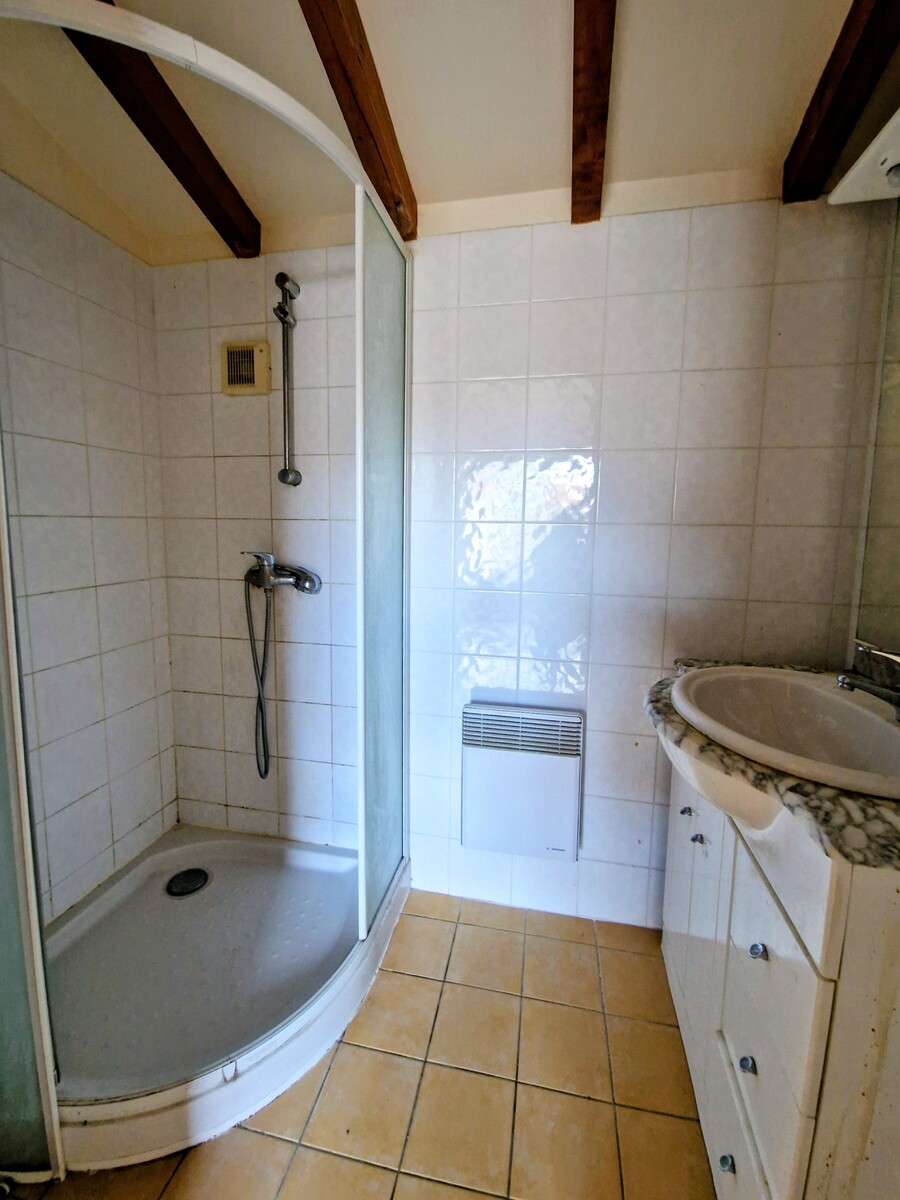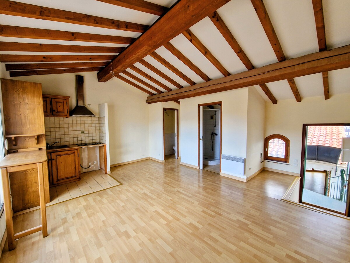 Studio 1er étage (env. 33m² surface habitable) : une belle pièce de vie lumineuse, ambiance "chalet", avec salle d'eau et wc