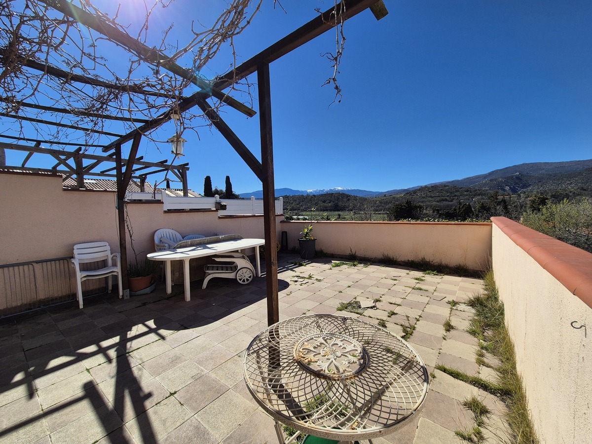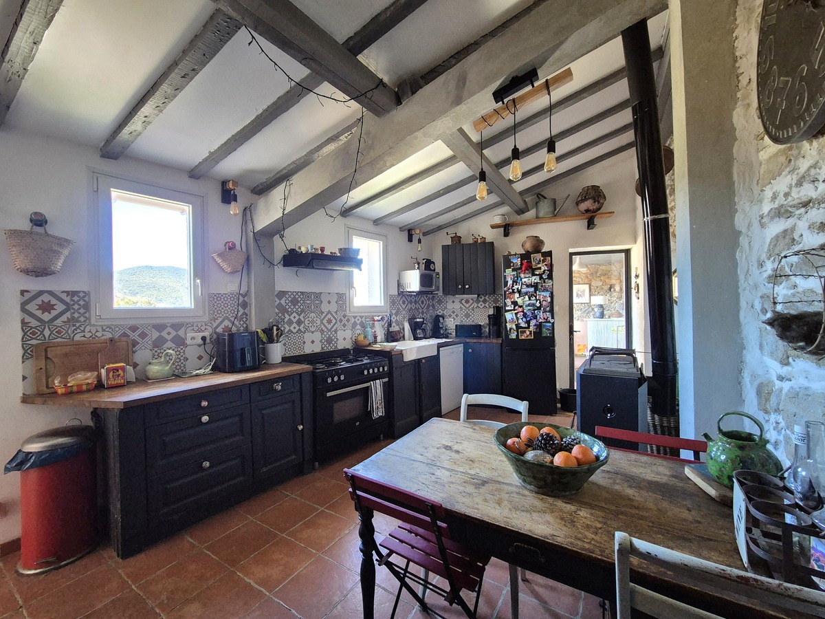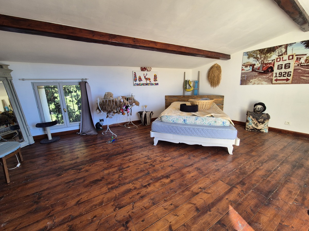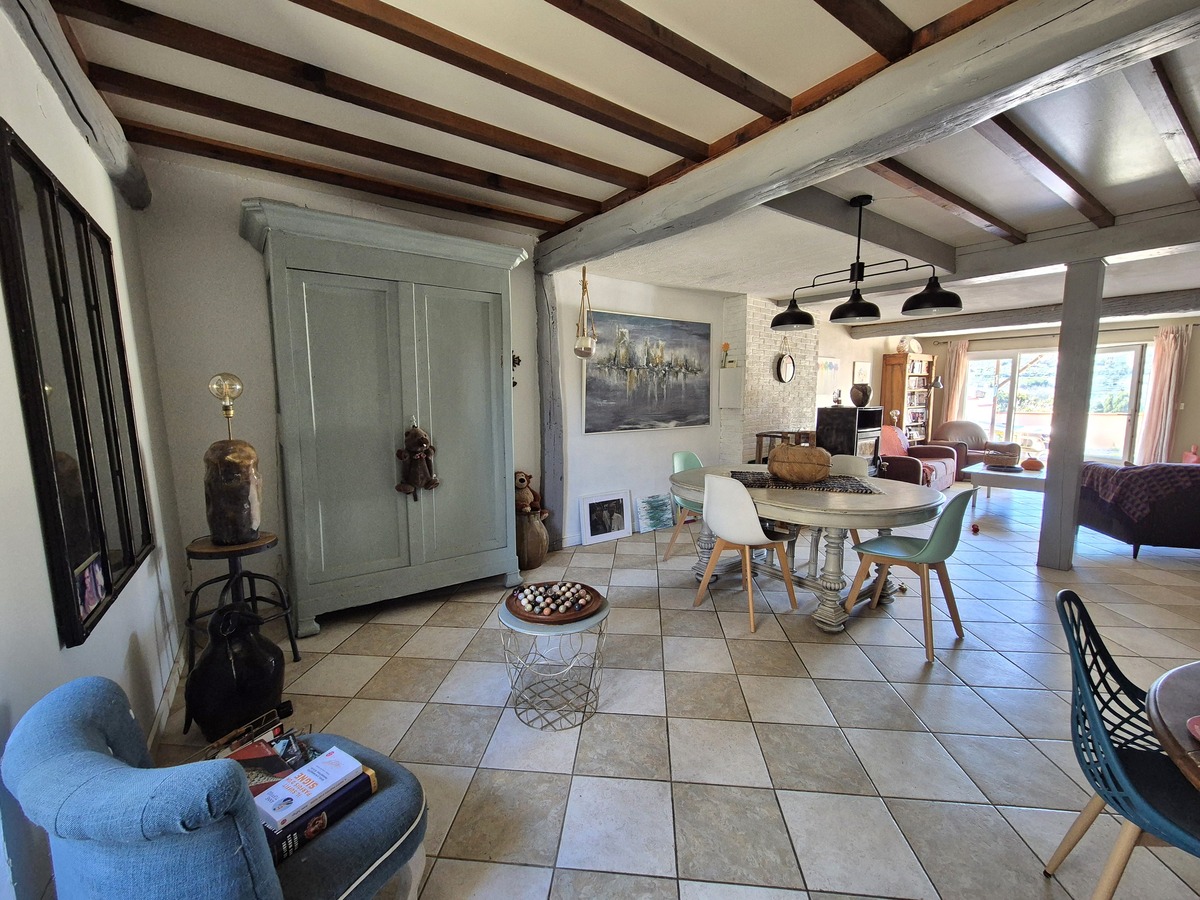 - 1er étage : lumineux salon/séjour équipé d’un poêle à bois et d’une climatisation, ouvrant sur une terrasse avec vue dégagée. Cuisine indépendante entièrement équipée, agréable loggia, bureau et chambre.